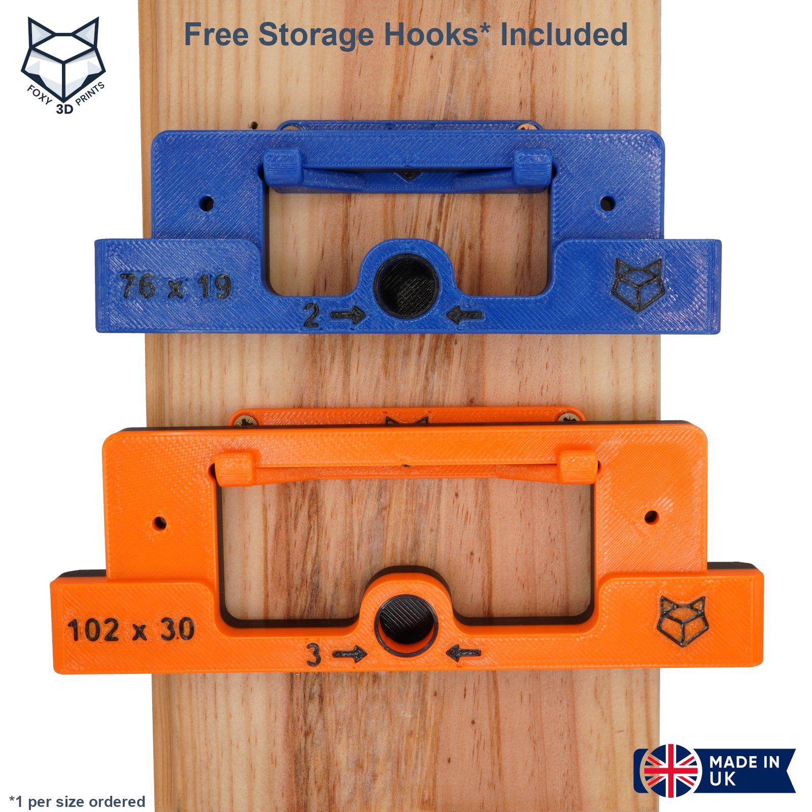 - Two M4x25mm screws stored safely inside the jigs for use as a clamping alternative